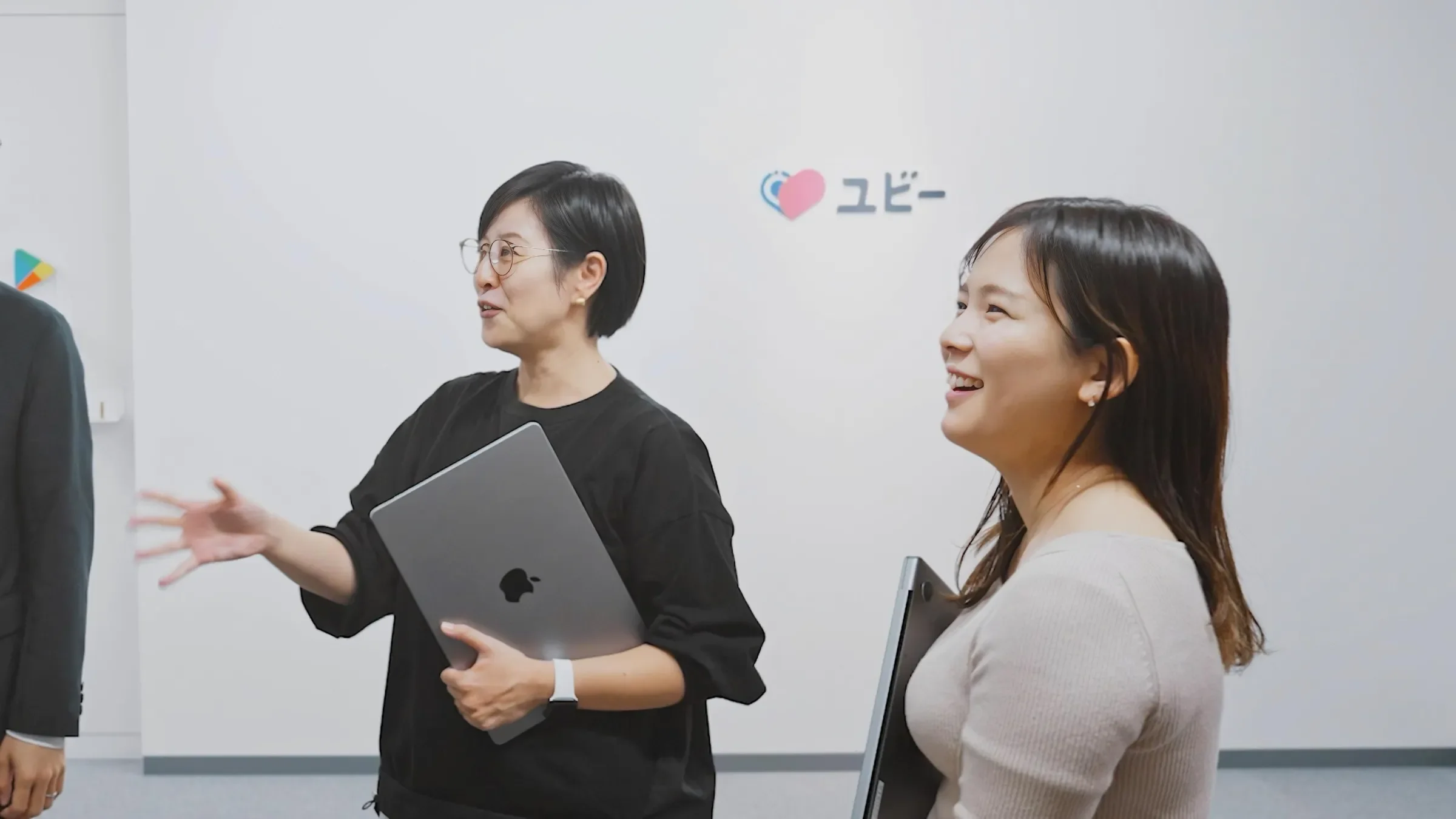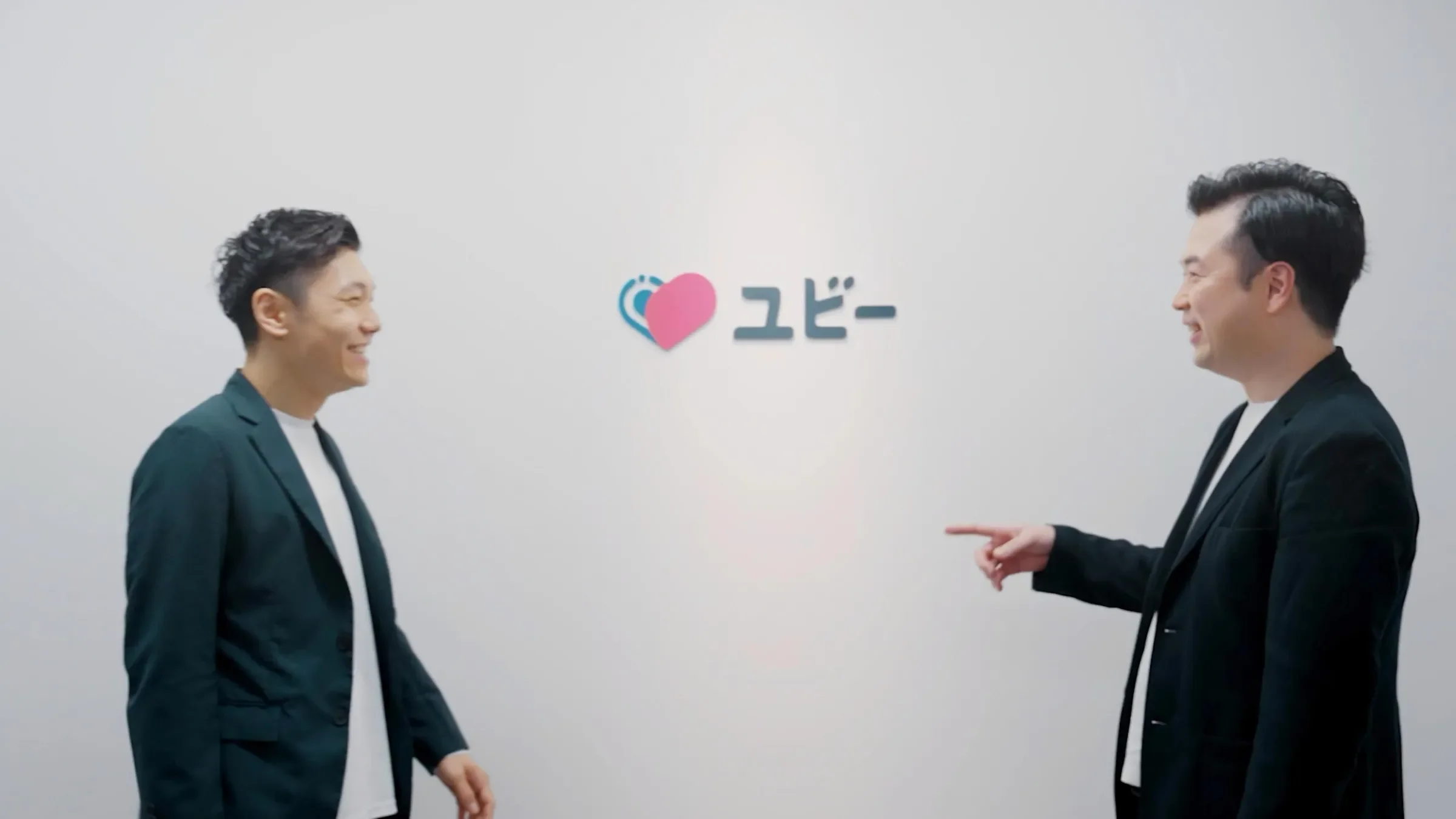 Ubieってどんな会社? 創業背景から目指すビジョン、事業内容や大切にしているカルチャーなど、共同代表の阿部と久保よりインタビュー形式でお伝えしています。(2024年4月撮影)
